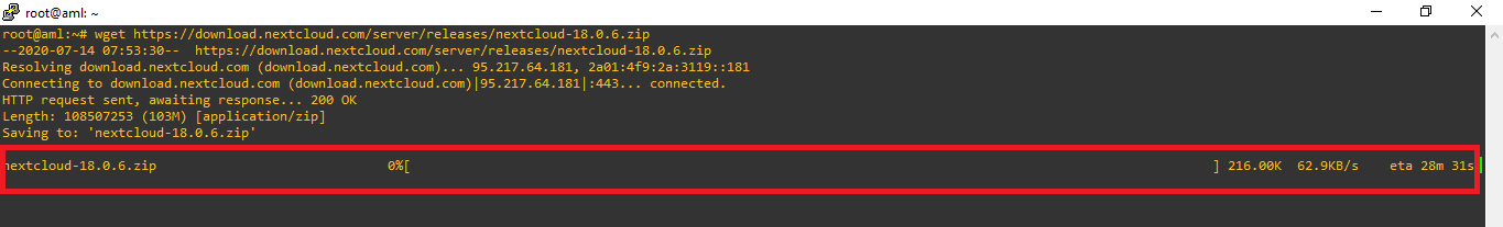wget https://download.nextcloud.com/server/releases/nextcloud-18.0.6.zip- warna orange = bisa diganti jika ada versi yang lebih baru